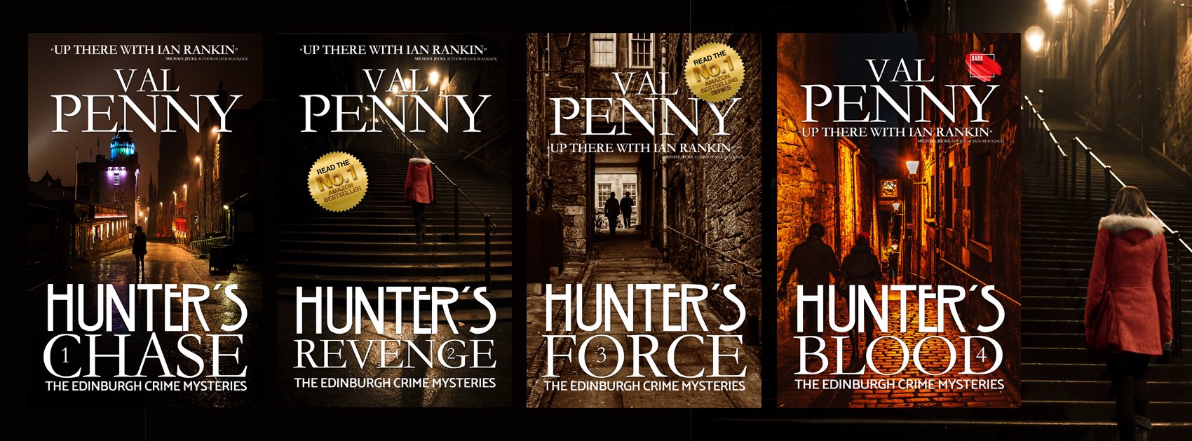 Hunter’s Chase, Hunter’s Revenge, Hunter’s Force, Hunter’s Blood, Hunter’s Secret, Let’s Get Published, Dark Scotland.